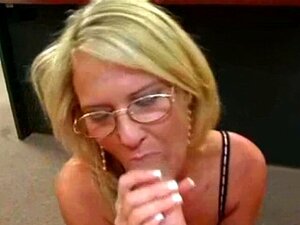金髪のホットワイフが吸う技術が優れており、胸を塗られる。