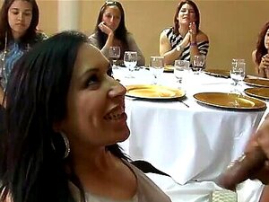 女の子たちがCFNMパーティーで巨大なチンポをしゃぶる。