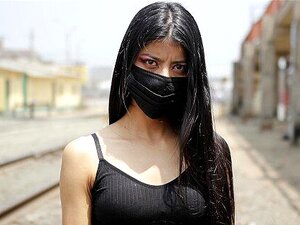 小柄なベネズエラのモデルがペルーの電車線近くで接近