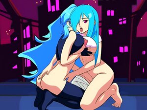 金曜日の夜のファンキンアニメーション、スカイブルーとヌスカイがステージでお互いの胸と尻を指で弄り、擦る。