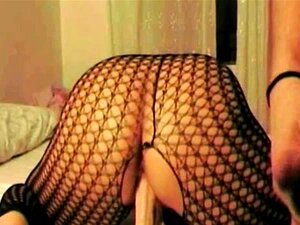 ブルネットが網タイツとハイヒールでディープスロートとファック