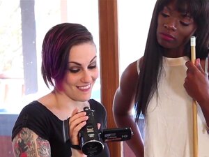 ダークサムとホワイトのレズビアンベイブが異人種間セックス(ロシアンルーレットによるアップ)。