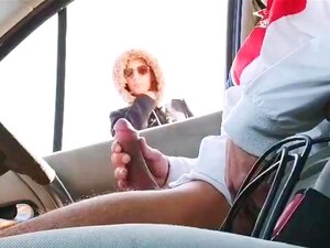 日焼けと自然に巨乳な日本の熟女は運転中に野生の車のセックスを持っています