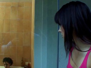 義理の妹のクリトリスを弄り、黒いパンティーにおしっこをする。女の子が義理の兄と少し変態的なことをしたいと思い、彼の硬いチンポをクリトリスに擦り付けるように頼む。彼らはバスルームでそれをする。義理の兄がパンティーにおしっこをするつもりだからだ。