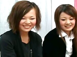 字幕付きCFNM二人の日本人女性が勃起を見つめる