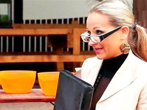 メガネをかけた熟年MILFがチンポを引っ張る。