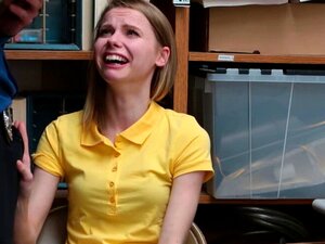 痩せたキューティーの万引き犯がついに捕まり、利用される。痩せたキューティの万引き犯はついに捕まり、店のバックオフィスで彼女を一人にした汚いLP警官に利用される。