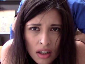 かわいいラティーナの万引き犯が変態モールの警官に激しくファックされる。面白いレトロな髪型のかわいいラティーナの店員が万引きの試みで捕まり、バックルームで変態モールの警官によって激しくファックされる。