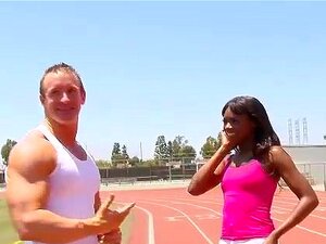 女の子に最適、タイトな尻とマンコの黒い女の子アナ・フォックスがランニングトレーニングの後にパーソナルトレーナーにファックされる